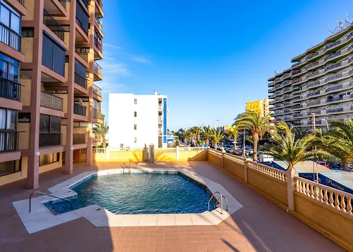 在Apartamento Gaviotas II R&R 滨海罗克塔斯,可以看见水池的景致,距离卡斯特尔公园只有0.7公里. 旅客可以使用私人游泳池,所有的客房都配有微波炉,冰箱 和厨具.